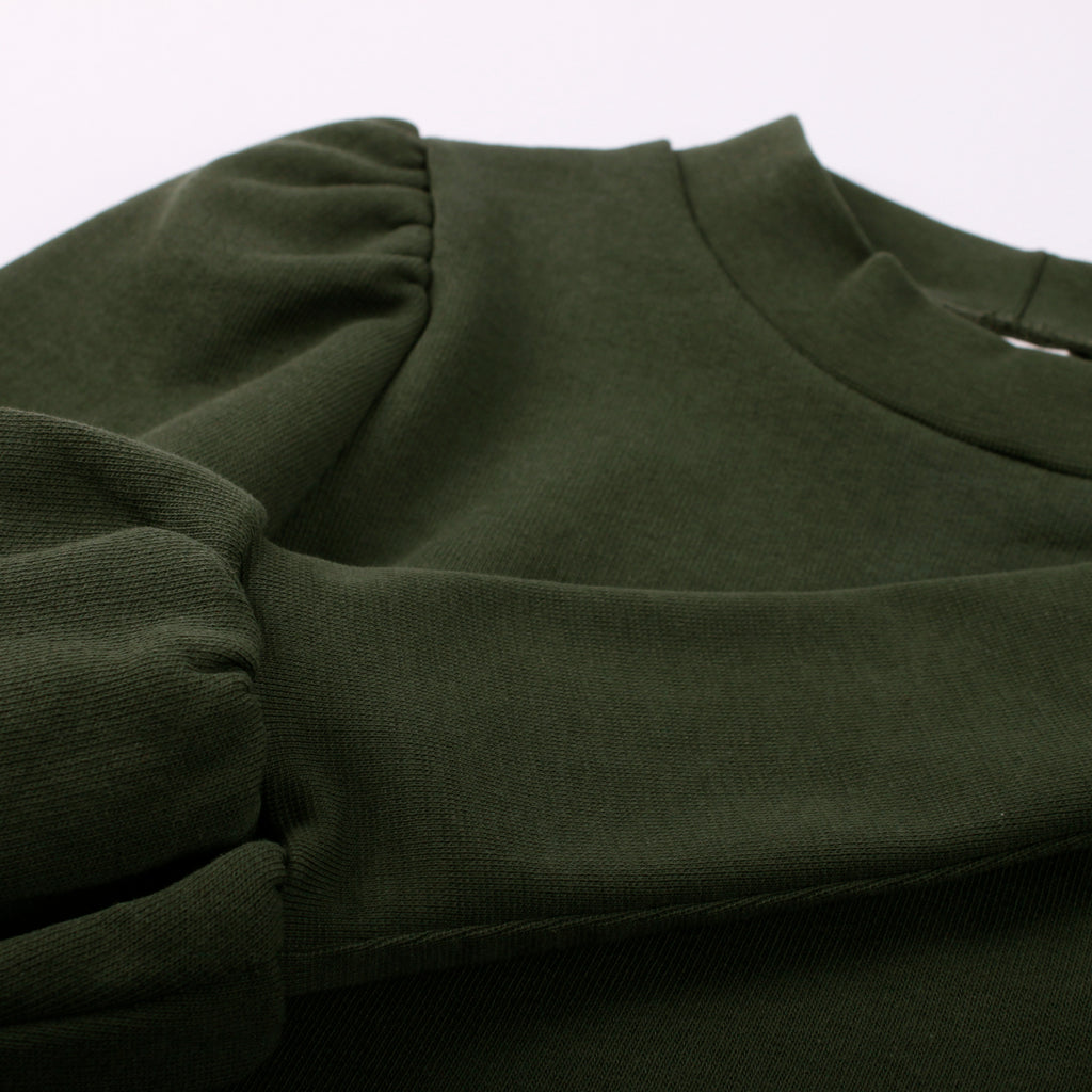 Pleats at the shoulders and high rib at the sleeves give the sleeves puff effect. The blouse is made of a soft and stretchable quality for better fit and longer durability when washing.